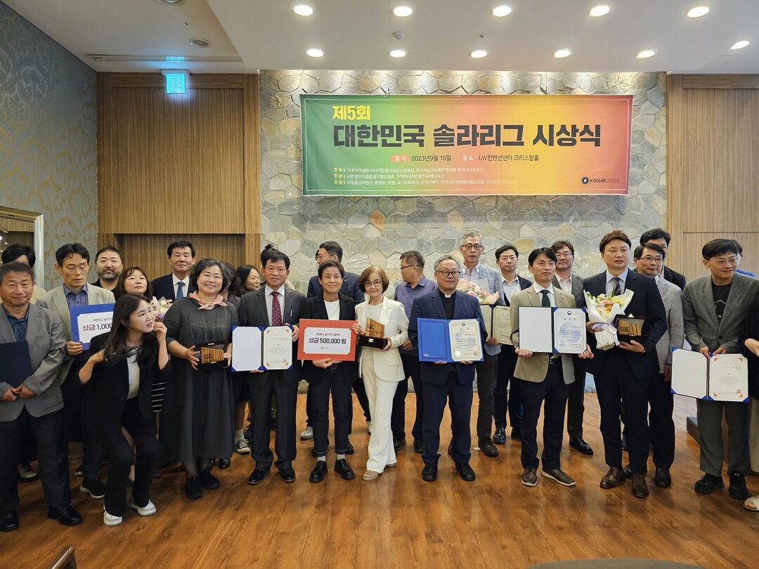 | ▲ 지난 15일 대한민국 솔라리그 시상식에서 순천시가 2023년 제5회 대한민국 솔라리그에서 우수기관으로 선정돼 산업통상자원부장관상을 수상한 뒤 기념촬영을 하고 있다. [순천시 제공] |