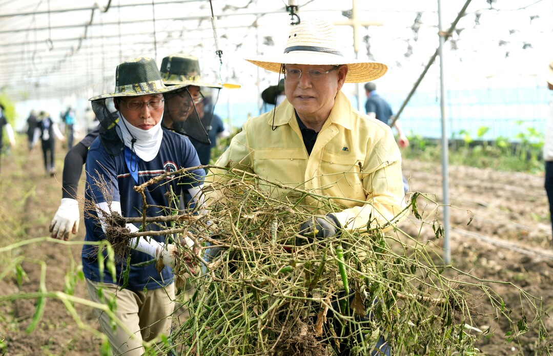 | ▲ 김영록 전라남도지사가 24일 오전 집중호우 피해를 입은 나주시 문평면 농가를 찾아 수해복구 봉사활동을 하고 있다. [전남도 제공] |