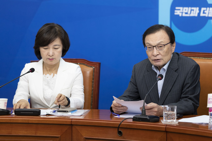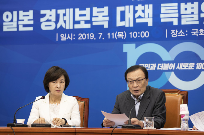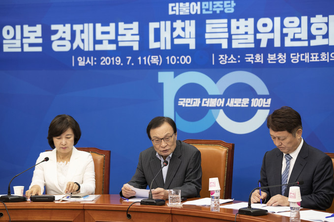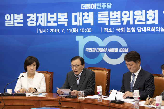 더불어민주당 이해찬 대표(오른쪽)가 11일 오전 서울 여의도 국회에서 열린 일본 경제보복 대책 특별위원회 회의를 주재하고 있다.