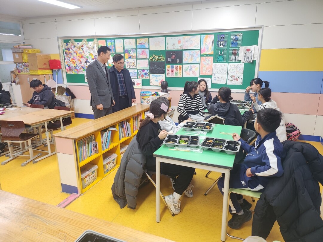 | ▲ 강상철 전남교육청 안전복지과장 등 관계자들이 해남동초 저녁돌봄교실 현장을 살피고 있다. [전남교육청 제공] |