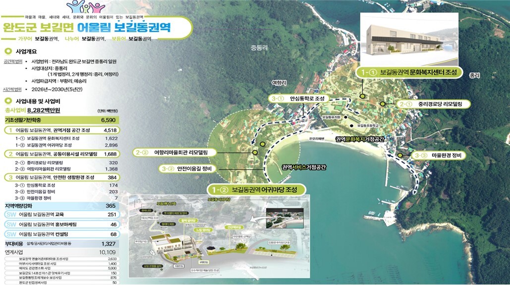 9일 완도군에 따르면 '어울림 보길동 권역(보길면 중리·여항리)'이 '행복한 삶터 조성 사업'에 선정됐다.