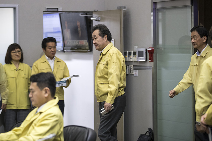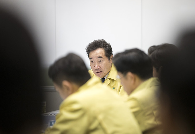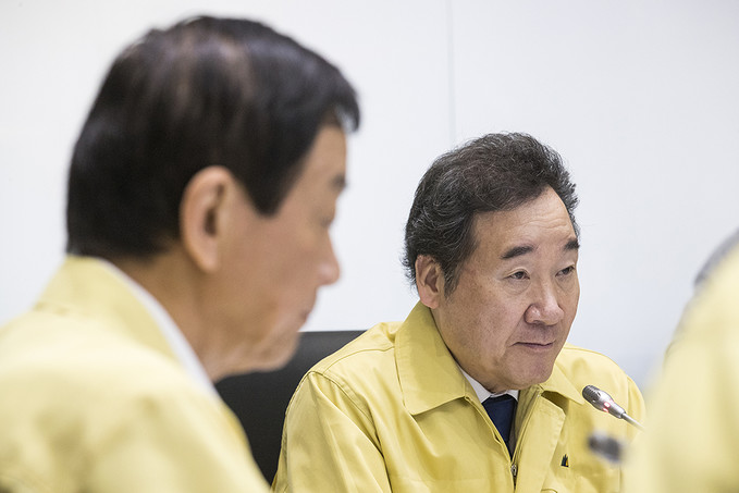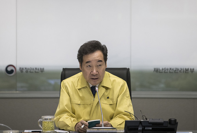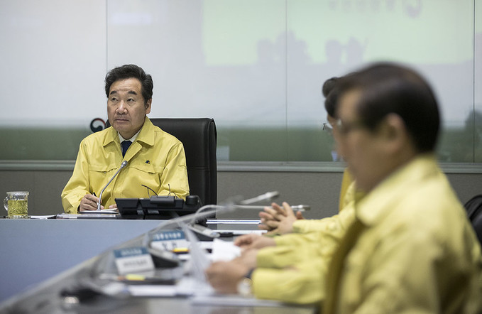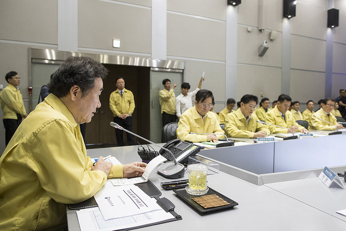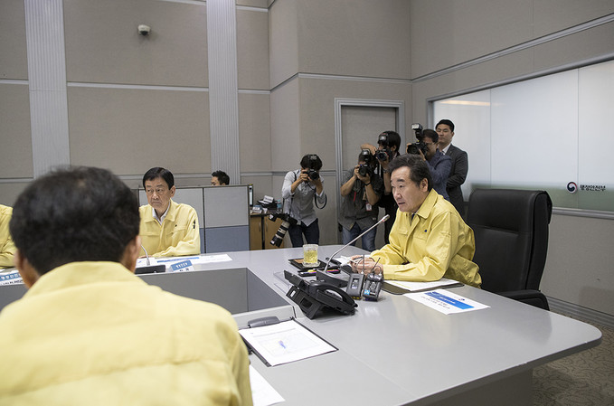 이낙연 국무총리가 4일 오전 서울 종로구 정부서울청사 중앙재난안전대책본부에서 제13호 태풍 링링 북상 대처상황 점검회의에 참석하고 있다.