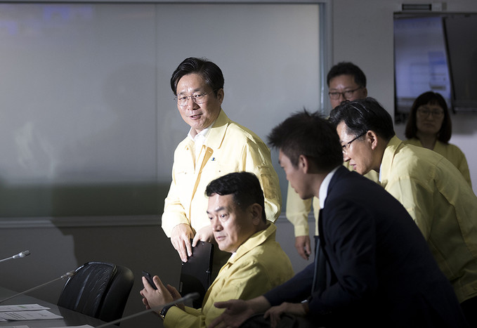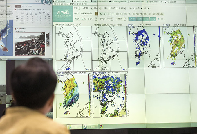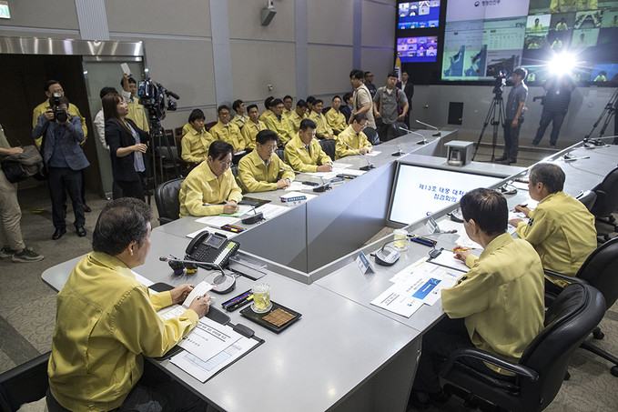 4일 오전 서울 종로구 정부서울청사 중앙재난안전대책본부에서 제13호 태풍 링링 북상 대처상황 점검회의가 열리고 있다.