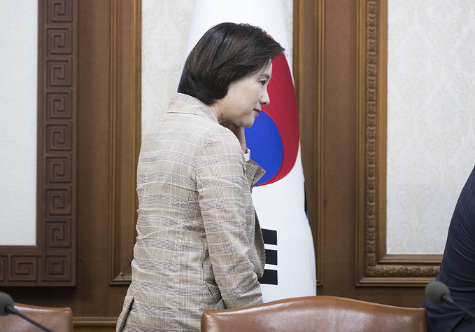 유은혜 사회부총리 겸 교육부장관이 17일 오전 서울 종로구 정부서울청사에서 열린 국무회의를 위해 회의실로 들어오고 있다.