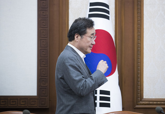 이낙연 국무총리가 17일 오전 서울 종로구 정부서울청사에서 열린 국무회의를 위해 회의실로 들어오고 있다.