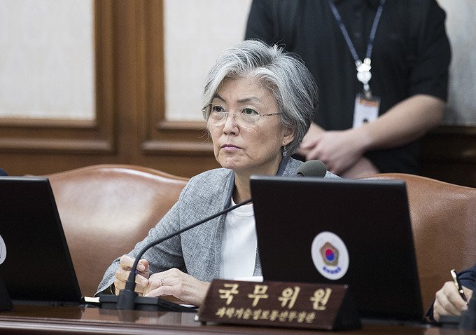 강경화 외교부 장관이 17일 오전 서울 종로구 정부서울청사에서 열린 국무회의에 참석해있다.