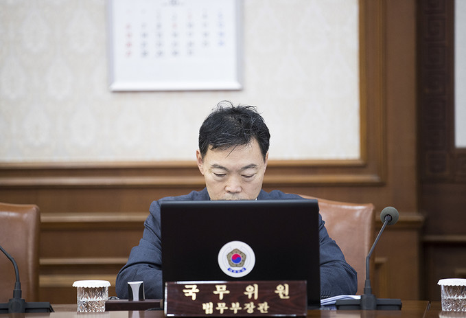 김오수 법무부 차관이 17일 오전 서울 종로구 정부서울청사에서 열린 국무회의에 조국 법무부 장관을 대신해 참석해있다.
