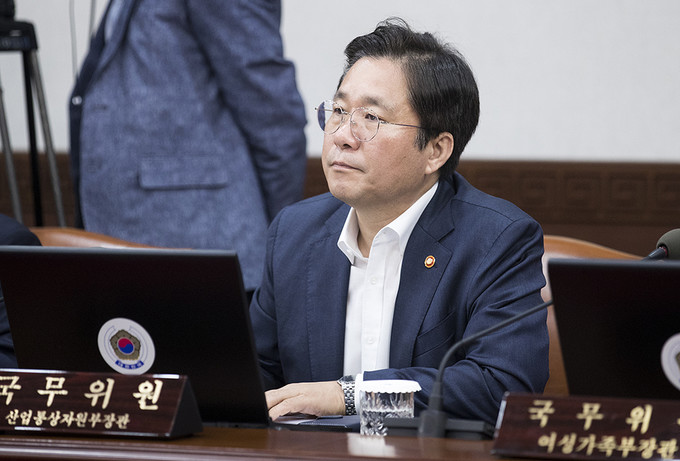 성윤모 산업통상자원부 장관이 17일 오전 서울 종로구 정부서울청사에서 열린 국무회의에 참석해있다.