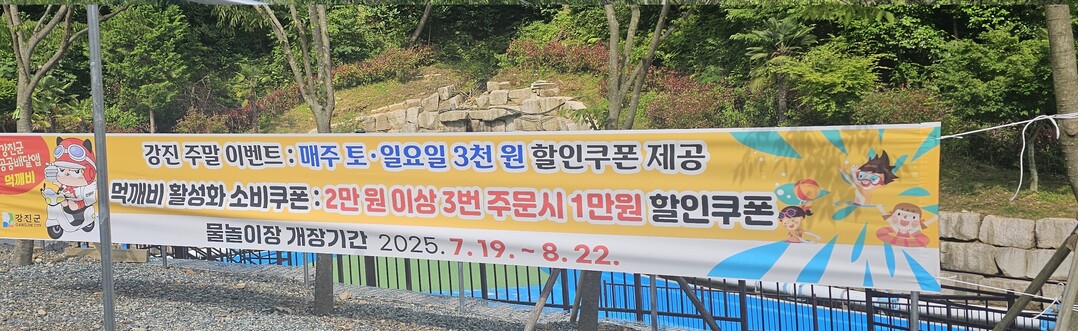강진군 공공배달앱 먹깨비는 강진군 보은산 V랜드 물놀이장에서도 배달 주문이 가능하며, 강진군은 하반기에도 다양한 할인이벤트를 추진할 예정이다.