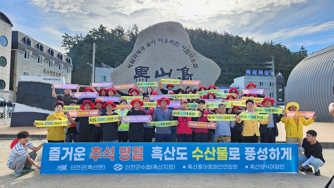 전남 신안군 흑산면이 22일 추석 명절을 맞아 흑산도 어업인, 수산물중매인, 신안군수협과 지역 수산물 상가 주민들이 참여한 가운데 흑산도에서 생산되는 수산물의 소비 홍보 캠페인을 벌였다.