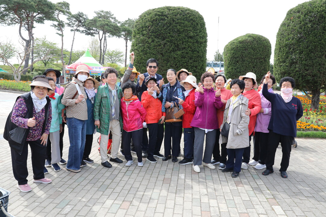 | ▲ 이상익 전남 함평군수가 25일 오전에 열린 제27회 함평나비대축제 개장식에서 해남에서 온 관광객과 함께 "해남군 화이팅"을 외치고 있다. [강성명 기자] |