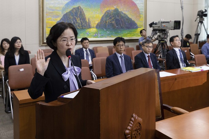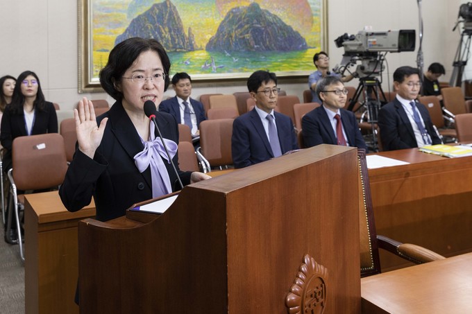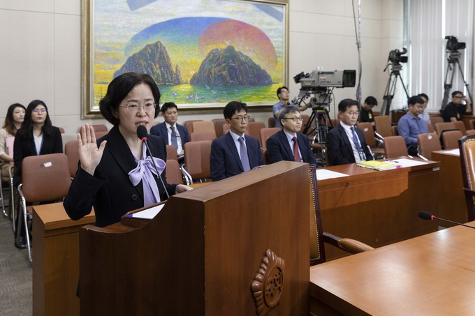 조성욱 공정거래위원장 후보자가 2일 오전 서울 여의도 국회에서 열린 정무위 인사청문회에 출석해 선서를 하고 있다.