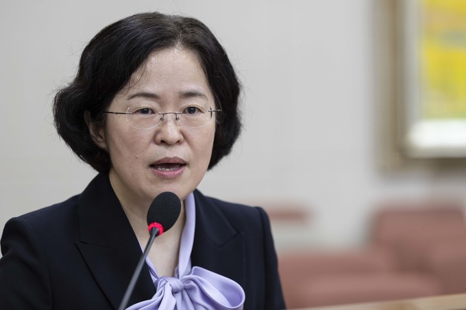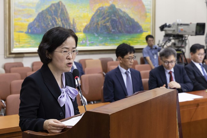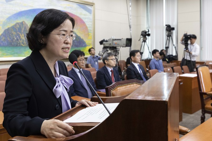 조성욱 공정거래위원장 후보자가 2일 오전 서울 여의도 국회에서 열린 정무위 인사청문회에 출석해 모두 발언을 하고 있다.