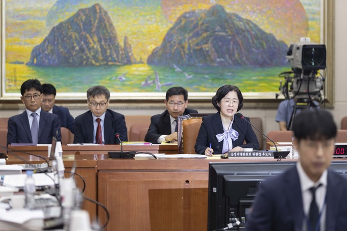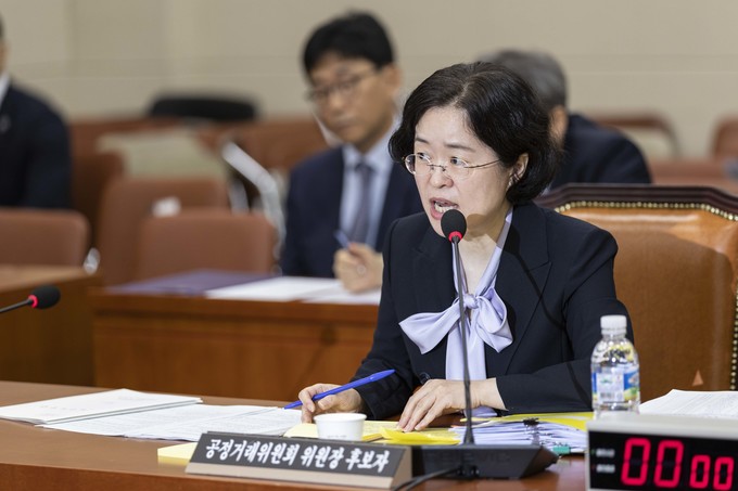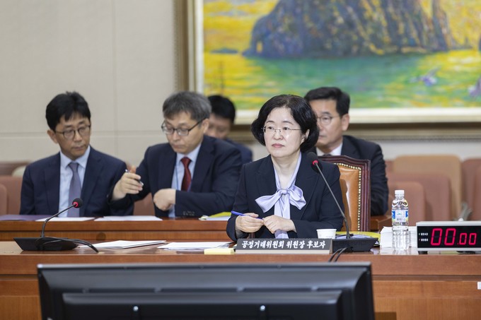 조성욱 공정거래위원장 후보자가 2일 오전 서울 여의도 국회에서 열린 정무위 인사청문회에 출석해 의원 질의에 답하고 있다.