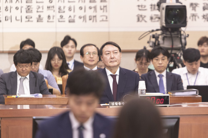 윤석열 검찰총장 후보자가 8일 오전 서울 여의도 국회에서 열린 검찰총장 인사청문회에 출석, 의원들의 질의를 듣고 있다.