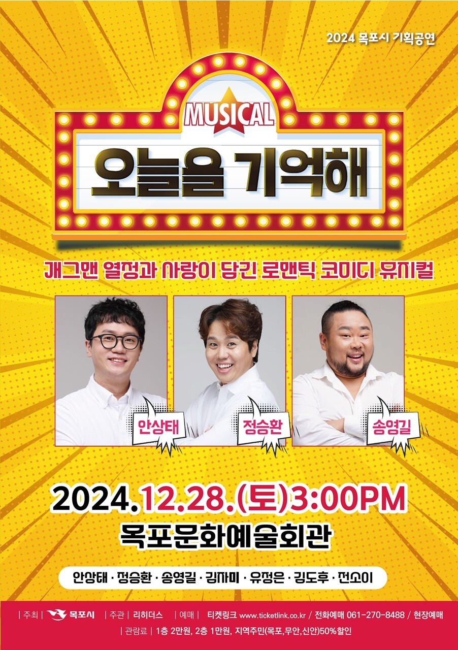 전남 목포시가 시민의 문화예술 향유권 확대를 위해 목포문화예술회관에서 뮤지컬 '오늘을 기억해'를 공연한다고 17일 밝혔다.