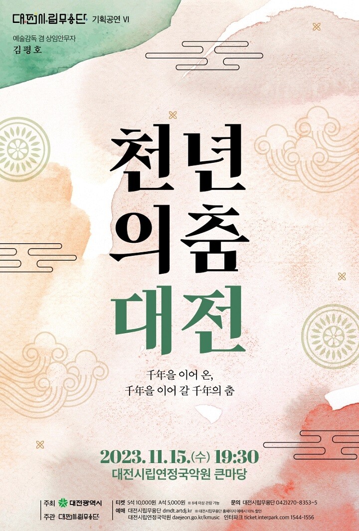 대전시립무용단은 15일 대전시립연정국악원 큰마당에서 우리춤의 멋과 흥이 가득담긴 ‘천년의 춤 – 대전’ 공연을 펼친다.