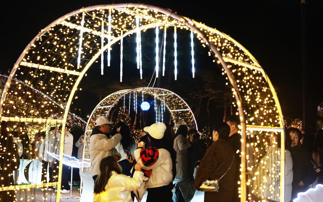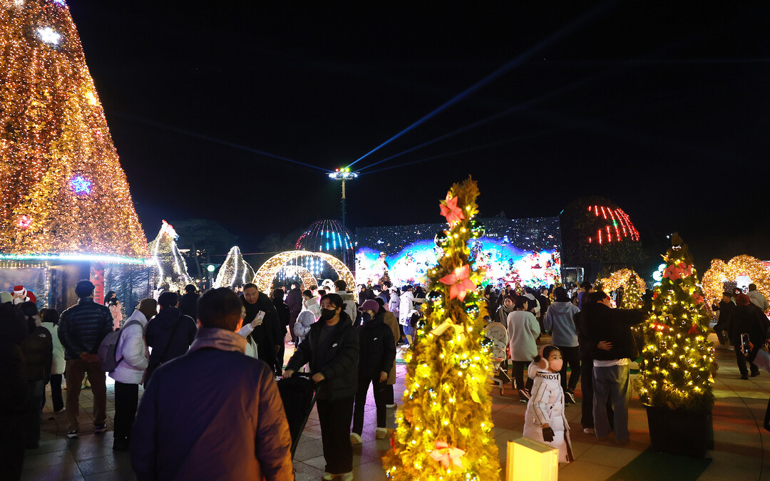 | ▲ 성탄절 당일인 지난 25일 '함평 겨울밤 빛축제'에서 중앙광장을 가득 채운 화려한 조형물과 조명 아래 수많은 방문객이 따뜻한 연말 분위기를 즐기고 있다. [함평군 제공] |