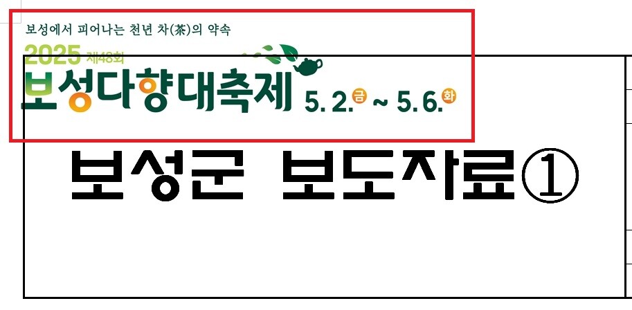 25일 보성군에 따르면 군은 한 달 전부터 보도자료 왼쪽 상단에 '2025 제48회 보성다향대축제 5.2(금)~5.6(화)' 이란 문구를 넣어 홍보에 나서고 있다.