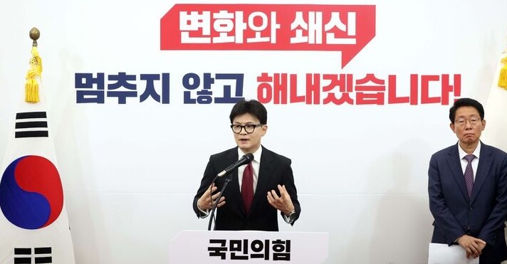 국민의힘 한동훈 대표는 30일 "우리 국민의힘은 지금 절체절명의 위기 상황으로 문제를 해결하지 않으면 우리에게 다음은 없다"고 말했다.