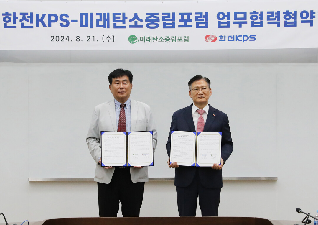 발·송전설비 정비 전문회사인 한전KPS가 지난 21일 미래탄소중립포럼과 탄소중립 실현을 위한 업무협약을 체결했다.
