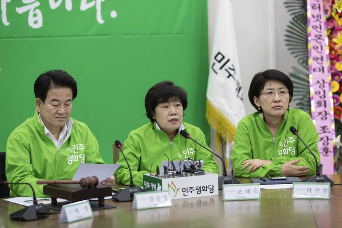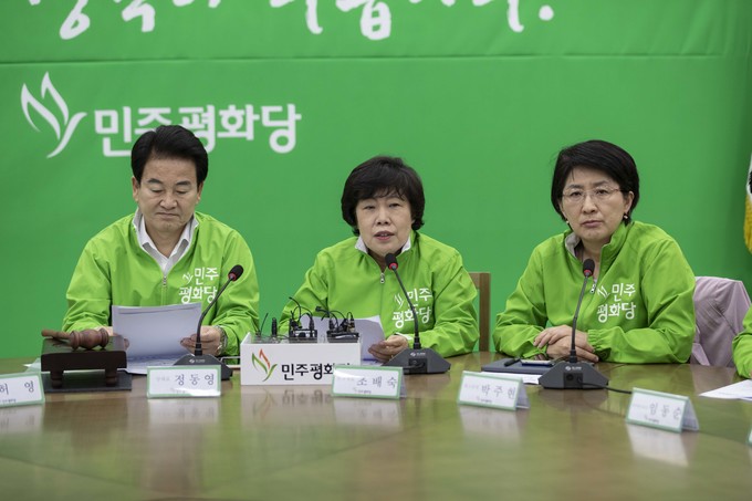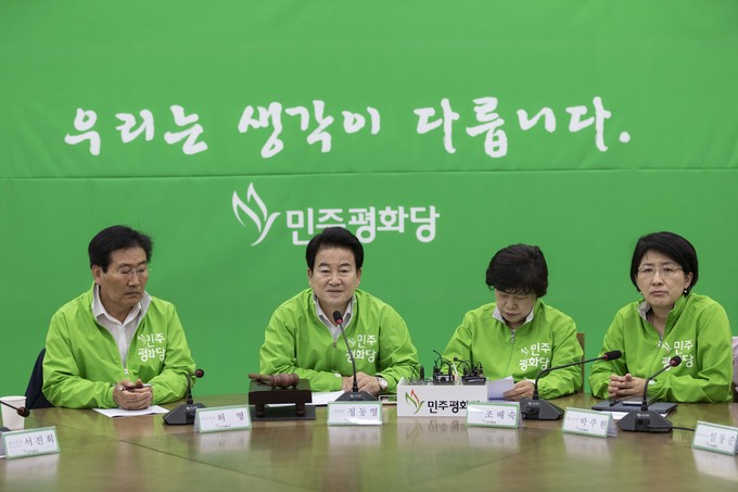 민주평화당 정동영 대표(왼쪽 두번째)가 4일 오전 서울 여의도 국회에서 열린 민주평화당 최고위원회의에 참석해 발언하고 있다.