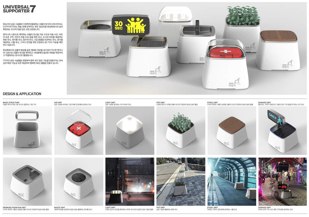 대상작 'UNIVERSAL SUPPORTER 7(홍욱)'은 기본 구조를 다목적으로 활용할 수 있는 공공시설물 디자인을 제안해 높은 평가를 받았다.