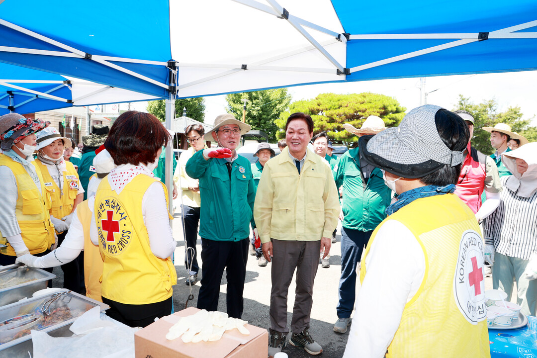 이날 행사에는 박완수 도지사와 오태완 군수가 현장을 직접 찾아 이재민들을 위로하고 적십사 봉사회 관계자들을 격려했다.