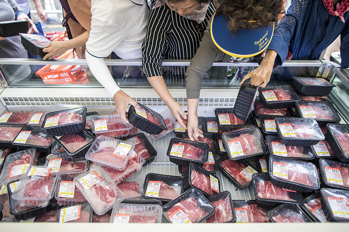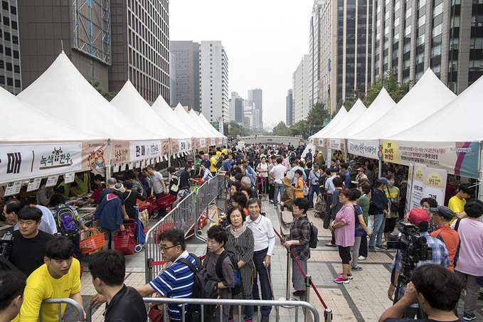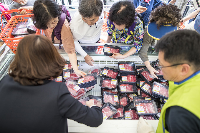 9일 오전 서울 중구 청계광장 소라탑에서 열린 2019 추석맞이 한우직거래 장터에서 시민들이 한우를 구매하고 있다.