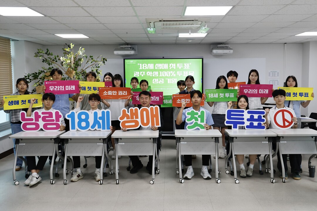 광주고등의회 최장우 의장과 집행부는 의장단 꿈트리에 '18세 생애 첫 투표 100% 달성 기원 메시지'를 게시하고, 홍보 레터링 사진 촬영, 보도자료 배포 등을 실시할 예정이다.