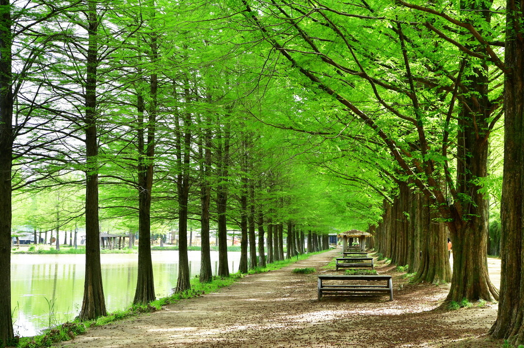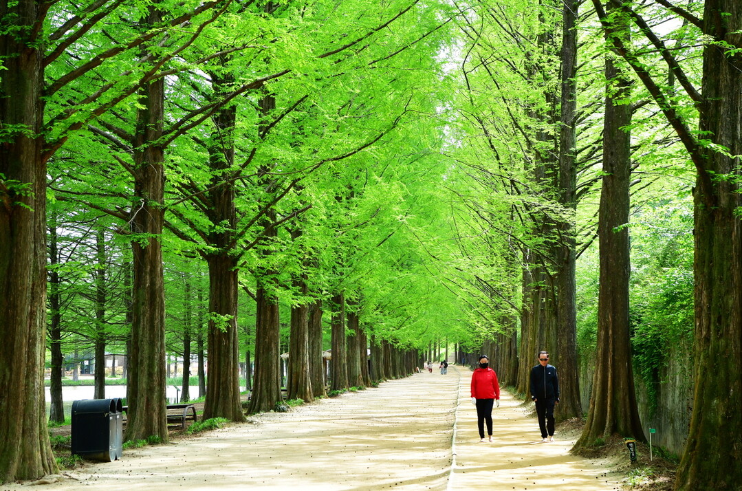 | ▲ 전남 담양의 대표 명소인 메타세쿼이아길이 완연한 봄을 맞아 싱그러운 초록빛 터널을 이루고 있다. [담양군 제공] |