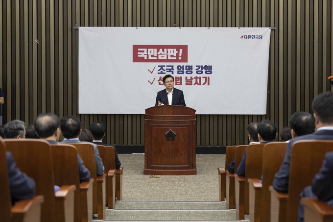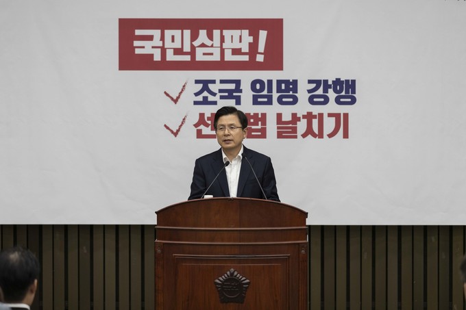 자유한국당 황교안 대표가 29일 오전 서울 여의도 국회에서 열린 한국당 긴급의원총회에 참석해 발언하고 있다.