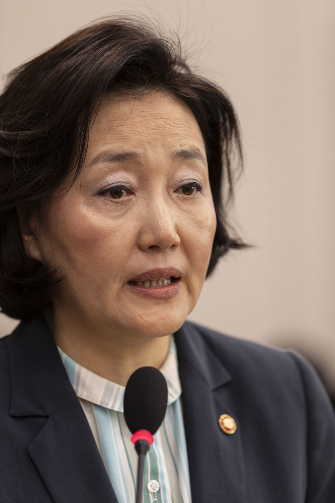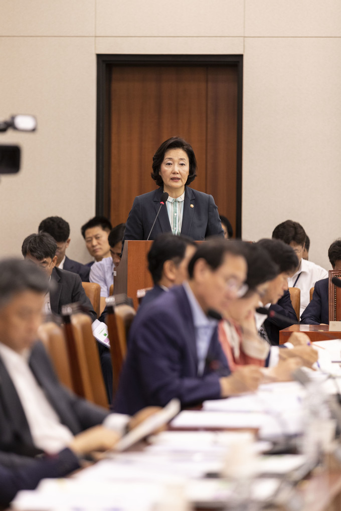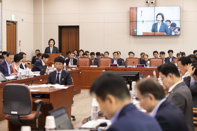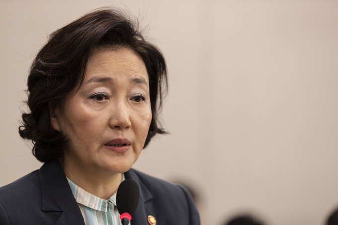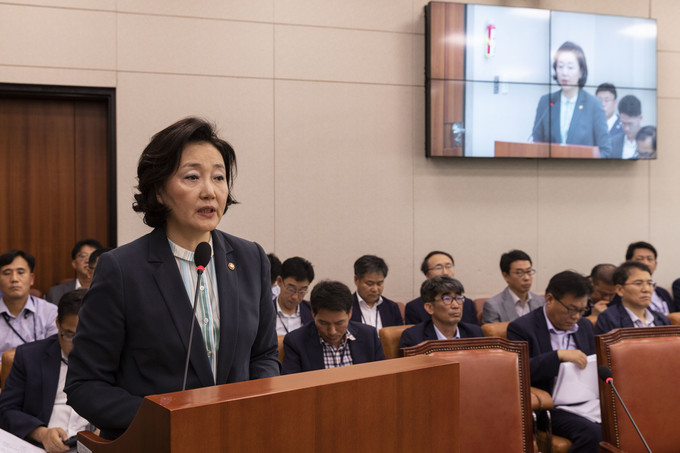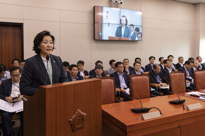 박영선 중소벤처기업부 장관이 16일 오전 서울 여의도 국회에서 열린 산업통상자원중소벤처기업위원회 전체회의에 참석해 업무 보고를 하고 있다.