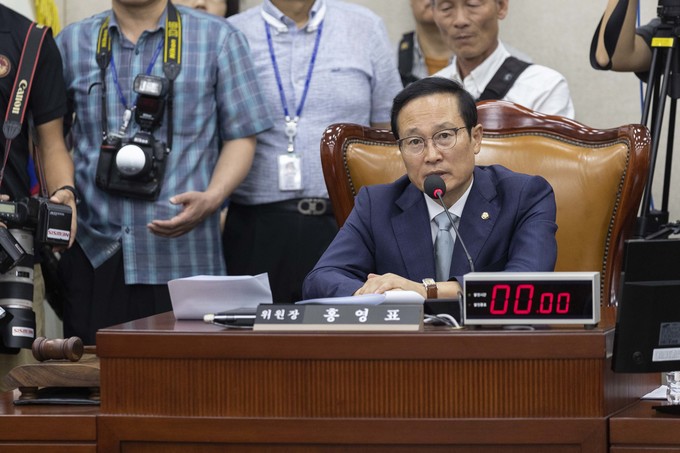 더불어민주당 홍영표 위원장이 29일 오전 서울 여의도 국회에서 열린 정치개혁특별위원회 전체회의를 주재하고 있다.