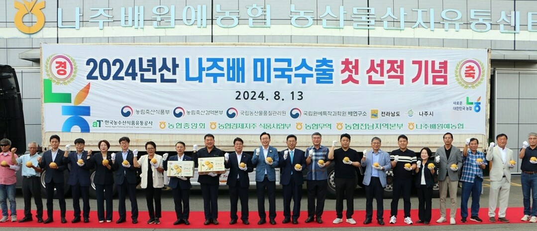 전남 나주시는 지난 13일 농산물산지유통센터에서 나주배원예농업협동조합과 함께 '원황 배 미국 수출' 선적 행사를 가졌다고 14일 밝혔다.