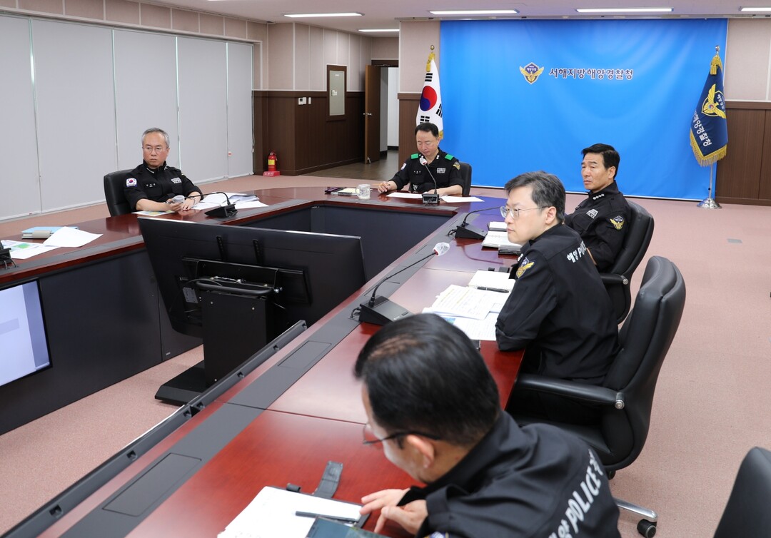 | ▲ 이명준 서해지방해양경찰청장이 태풍 '종다리' 북상에 따른 비상근무 체제를 지시하고 있다. [서해해경청 제공] |