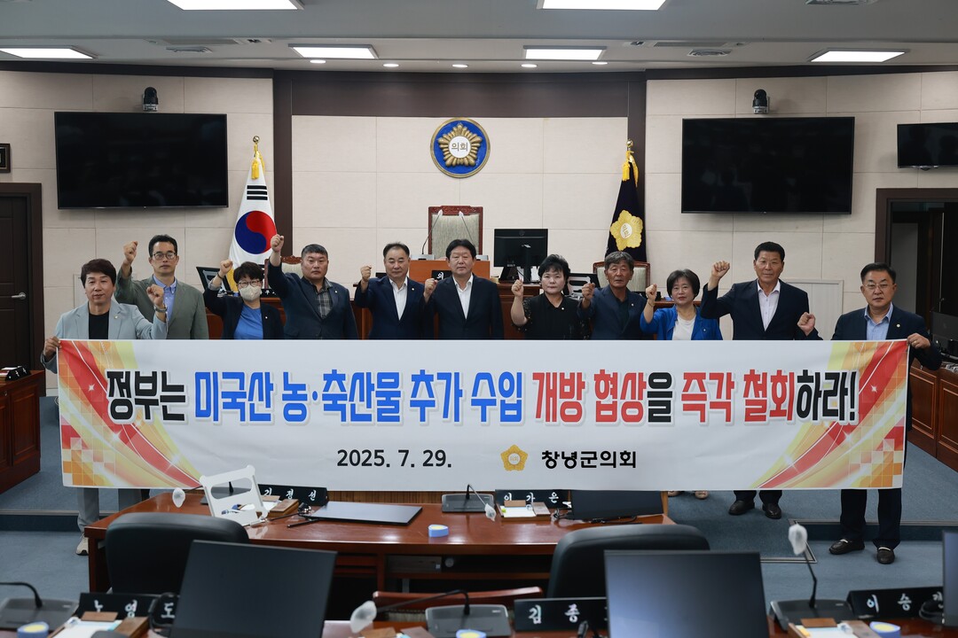 경남 창녕군의회(의장 홍성두)는 29일 정부가 추진 중인 미국산 농·축산물 추가 개방 협상에 대해 깊은 우려를 표하며, 이를 즉각 중단할 것을 촉구하는 성명서를 발표했다.