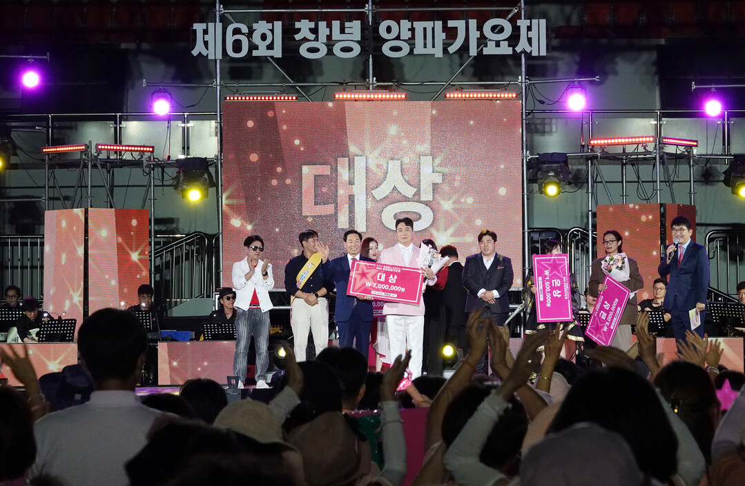 경남 창녕공설운동장 특설무대에서 지난 9일 열린 작곡가 박성훈과 함께하는 제6회 창녕양파가요제가 주민 등 5000여 명이 참석한 가운데 성황리에 마무리됐다.