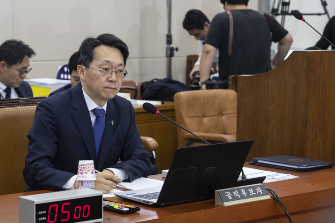 김현준 국세청장 후보자가 26일 서울 여의도 국회에서 열린 인사청문회에 참석해 의원 질의를 듣고 있다. 이날 자유한국당 추경호 의원은 "국세청이 여전히 정권의 도구로 이용되고 있다는 우려와 지적에 동의하느냐"고 질의했다. 이에 김 후보자는 "동의하지 않는다"고 답하며 야당의 '정권의 호위무사' 지적에 선을 그었다.