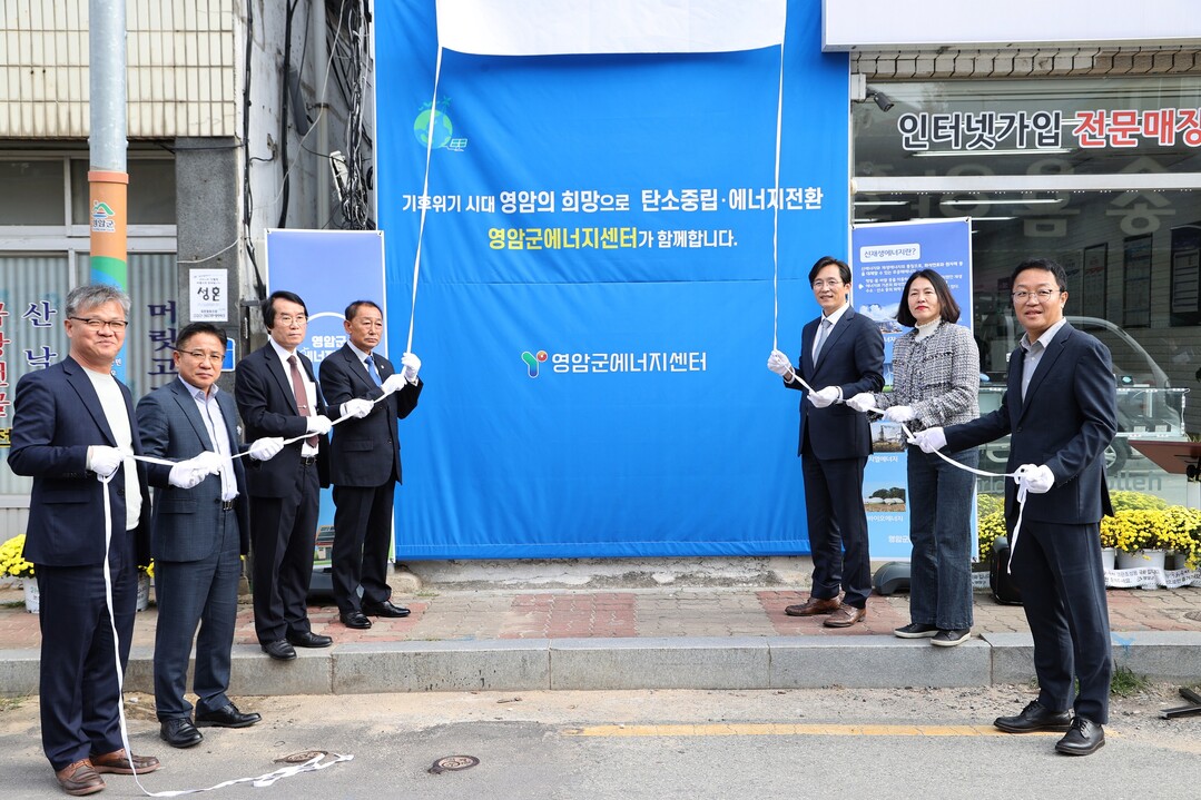 | ▲ 지난 9일 우승희 영암군수를 비롯한 전문가들이 영암읍 남문로에서 ‘영암군에너지센터’ 개소식을 갖고 있다. [영암군 제공] |