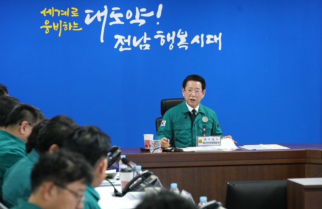 | ▲ 김영록 전라남도지사가 6일 도청 재난종합상황실에서 제주항공 여객기 사고 대책회의를 주재하고 있다. [전남도 제공] |