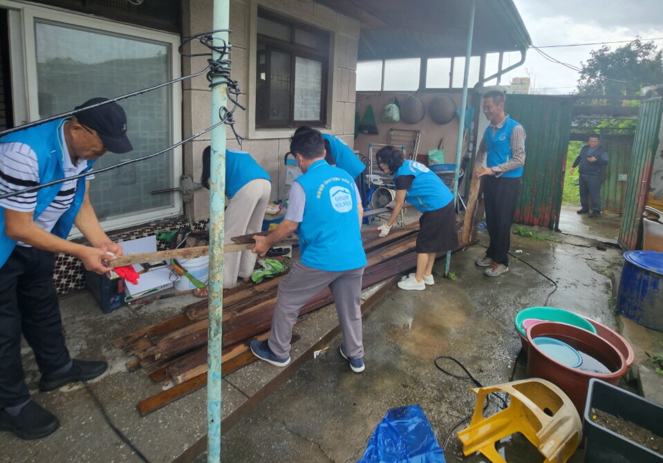 | ▲ 지난 22일 전남 나주시 '성북동 우리동네 복지기동대'가 독거 장애노인 주거 환경 개선을 위해 노후 주택을 방문해 낙상위험이 있는 높은 토방과 파손된 마루에 안전계단과 안전손잡이를 설치하고 마루 보강작업을 진행하는 등 구슬땀을 흘렸다. [나주시 제공] |