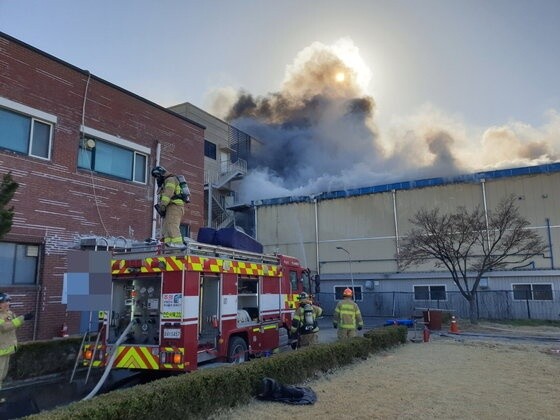 화재 현장엔 현재 소방차 31대와 인력 123명을 투입해 화재를 진압 중이다. 공장 직원들은 자력으로 긴급 대피한 상태다.