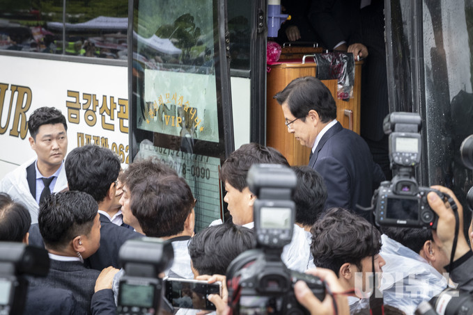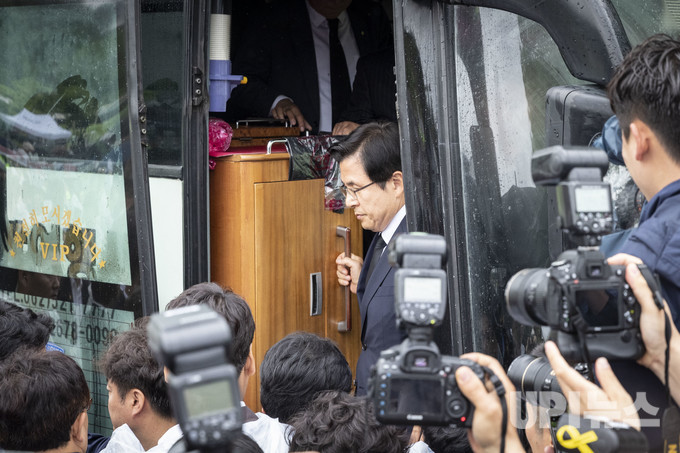 황교안 자유한국당 대표가 18일 오전 광주 북구 국립 5·18민주묘지에서 열리는 제39주년 5·18민주화운동 기념식에 참석하기 위해 버스에서 내리고 있다.