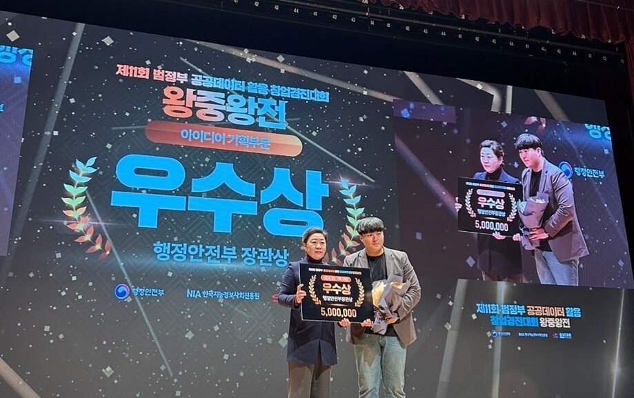 광주시 대표로 출전한 창업기업이 행정안전부 주관 ‘공공데이터 활용 창업경진대회 왕중왕전’에서 광주 최초로 행정안전부 장관상을 수상했다.