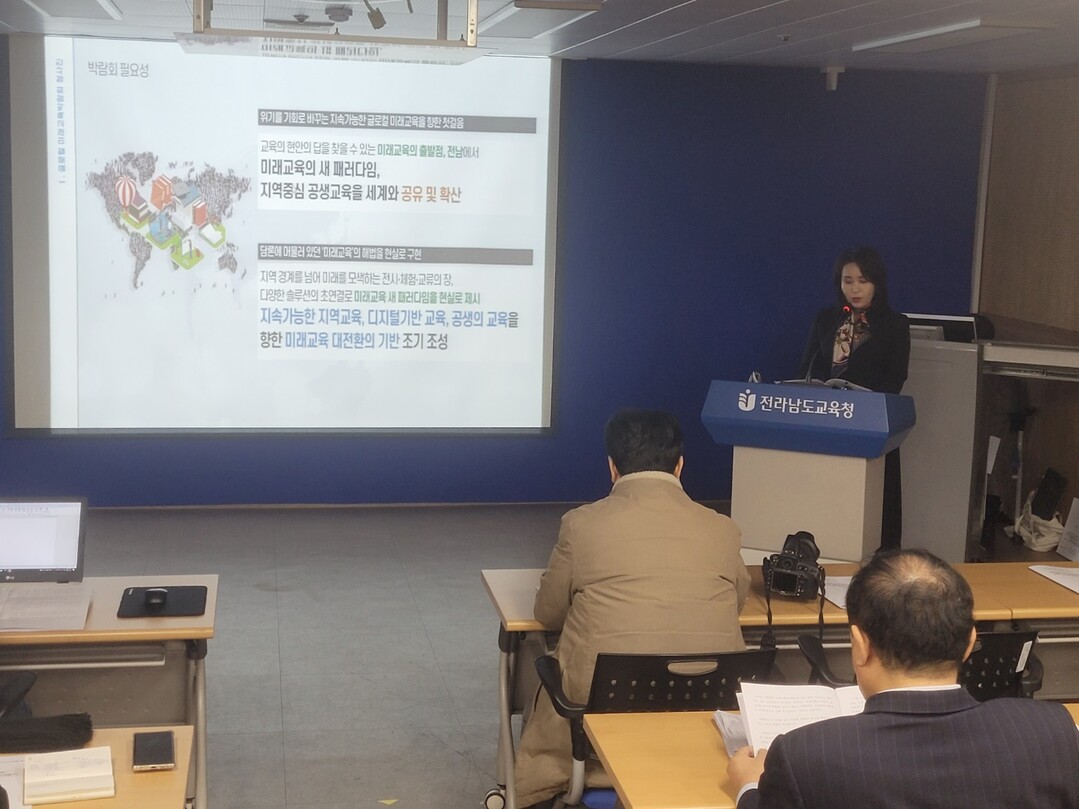 전라남도교육청이 내년 5월에 개최되는 2024 대한민국 글로컬 미래교육박람회를 수도권이나 중앙주도형 박람회에서 국내 최초 지역이 주도하고 지역과 국제사회 협력체계를 강화해 글로벌 교육 교류 기회를 확대하는 박람회로 만들겠다고 밝혔다.