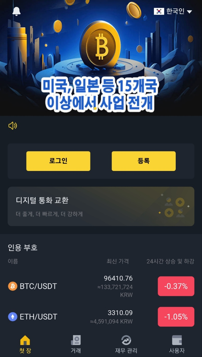 | ▲ 사기행위에 활용된 '가짜 거래소' 메인화면. [인터넷피해구제협회 제공] |