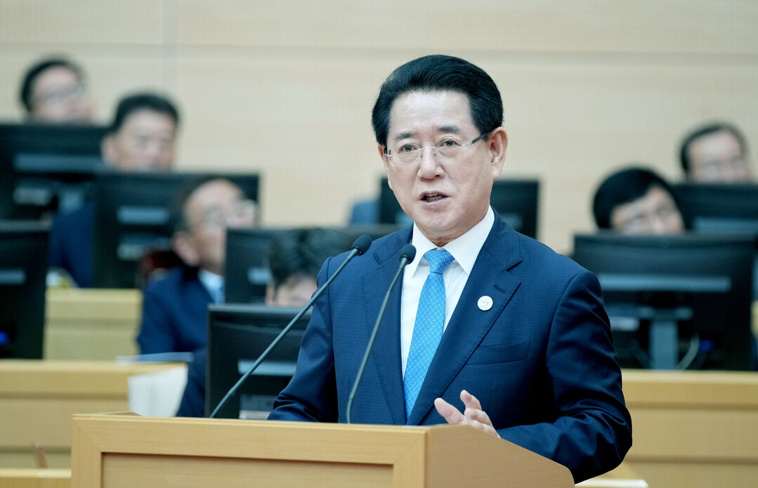 | ▲ 김영록 전라남도지사가 12일 전남도의회 제374회 임시회 제2차 본회의에서 조옥현의원의 도정질의에 대한 답변을 하고 있다. [전남도 제공] |