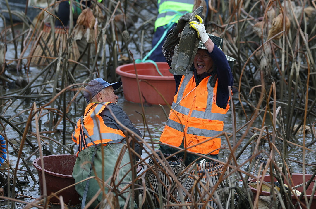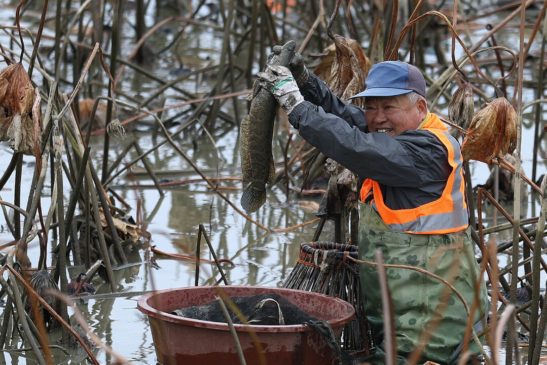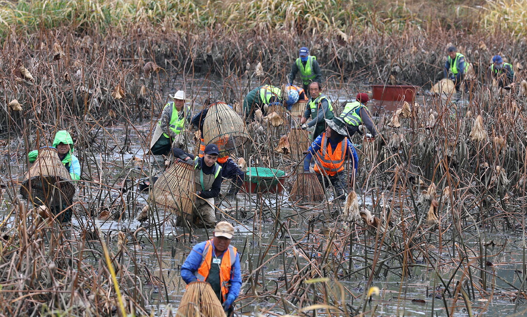 | ▲ 지난 19일 전남 강진군 병영면 중고저수지에서 주민들이 대나무를 줄로 엮어 만든 원통형 바구니인 '가래'로 물고기를 잡고 있다. 전통어업유산인 '가래치기'는 가래로 물고기를 가둬 잡는 방법이라 붙여진 이름으로 해마다 농사를 끝내고 저수지의 물을 뺀 뒤 물고기를 잡아 주민이 한데 어우러져 잔치를 벌이고 있다. [강진군 제공] |