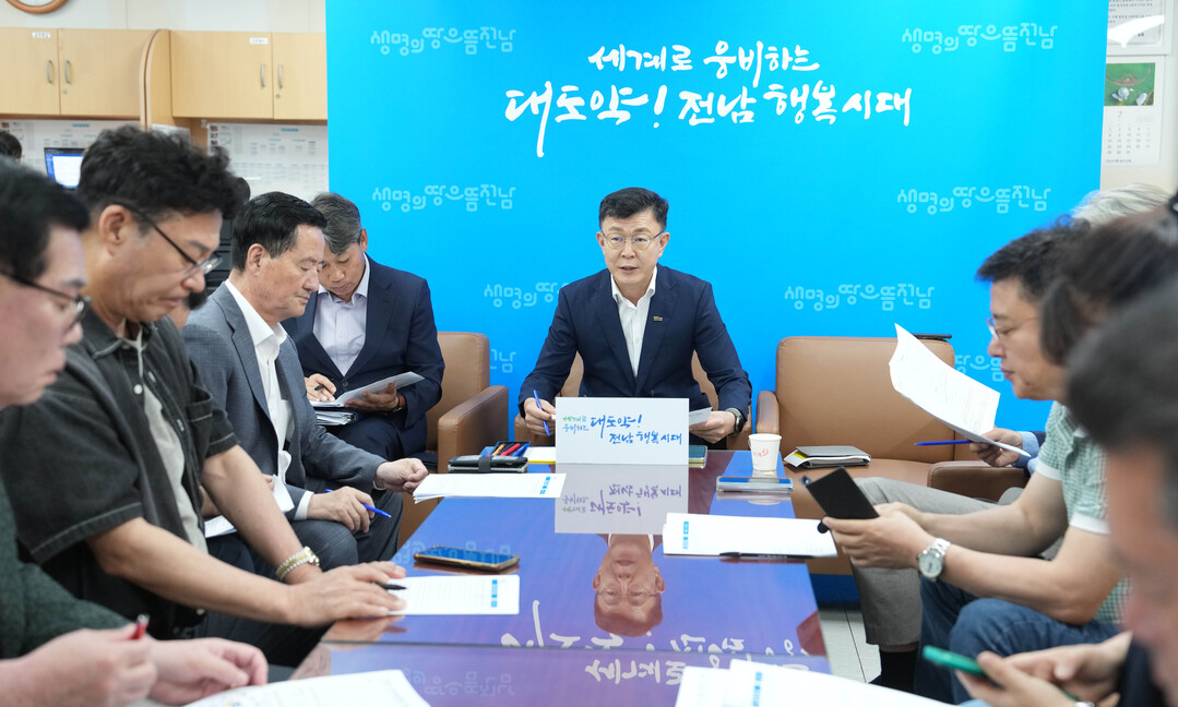 | ▲ 전남도 박영채 해양수산국장이 9일 기자실에서 기자간담회를 열고 "9일 오전 9시부로 내만을 포함한 서해, 남해 연안 일부지역에 고수온 주의보가 발령되어 양식장 피해 최소화를 위한 사전대비 완료와 즉각적인 비상 대응 체계에 돌입한다"고 밝히고 있다. [전남도 제공] |